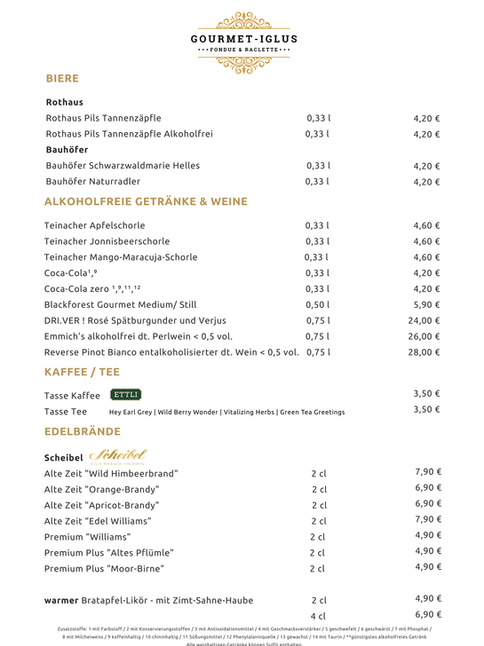 *Die Getränkekarte ist aktuell für die Saison 2025/2026 noch in Bearbeitung - Änderungen vorbehalten